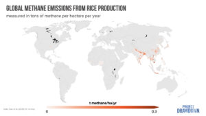 An international science team, including researchers at Project Drawdown, developed a new geospatial dataset of methane emissions from croplands. Their findings reinforce that rice fields generate the most greenhouse gases of any crop. Much of the emissions are concentrated in India and Southeast Asia, and to a lesser extent, along the Mississippi River Delta.