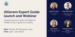 Join us for the launch of Altiorem’s latest Expert Guide on a Sustainable Finance topic, developed by Research Associate Catherine Liadi, Lead Mentor Georgie Murray, and Altiorem.