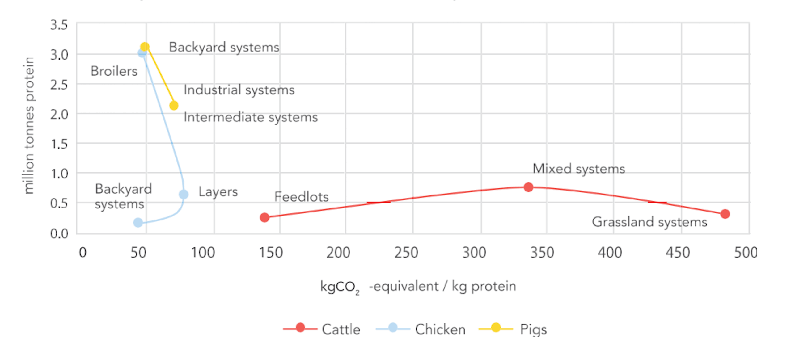 - On the supply side, producers can improve farm technology and introduce sustainable farming practices to facilitate the shift towards sustainable protein. Producers can also install energy saving devices, add supplements to feed or bio-digesters in sewerage treatment, transition away from antimicrobials, and improve feed sourcing and crop yields to reduce their environmental footprint. A 30% reduction in greenhouse gas emissions is possible by changing from grassland to mixed production systems.